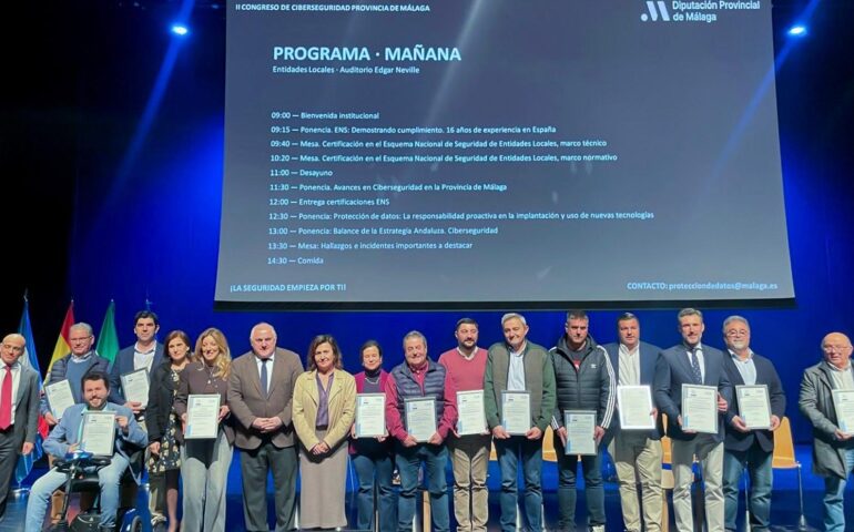 La certificación fue recogida por el concejal de Nuevas Tecnologías, Antonio López, en el Auditorio Edgar Neville, en el marco del II Congreso de Ciberseguridad de la Provincia de Málaga.