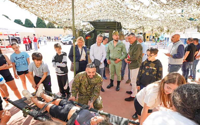 El alcalde de Nerja, José Alberto Armijo, junto a los concejales de Educación, Seguridad y Salud, el alcalde de Frigiliana y el edil de Educación, y la primera teniente de alcalde de Torrox, han visitado el centro para conocer de primera mano el desarrollo de esta jornada. El regidor destacó el valor de este tipo de iniciativas, subrayando que permiten al alumnado comprender de forma directa la importante labor que desempeñan los profesionales sanitarios, las entidades sociales y los cuerpos y fuerzas de seguridad.