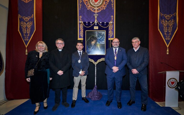 El acto tuvo lugar en la Casa Hermandad y contó con la presencia del alcalde de Nerja, José Alberto Armijo; el director espiritual, Antonio Jesús Carrasco; la concejala de Cultura, Ana María Muñoz; miembros de la Corporación Municipal; así como numerosos hermanos, devotos y representantes del ámbito cultural y cofrade. Los asistentes pudieron contemplar por primera vez una obra que representa la Undécima Estación del Vía Crucis, plasmada con profundo sentido cofrade.