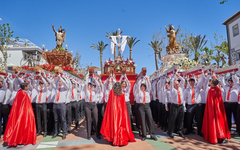 La Cofradía de Jesús Resucitado, María Santísima de la Asunción y la Santa Cruz Gloriosa ha puesto el broche de oro a la Semana Santa con la procesión del Domingo de Resurrección que llenó las calles de Nerja de fervor y alegría. Vecinos y visitantes acompañaron a los Sagrados Titulares en un recorrido marcado por la devoción propia de esta jornada.