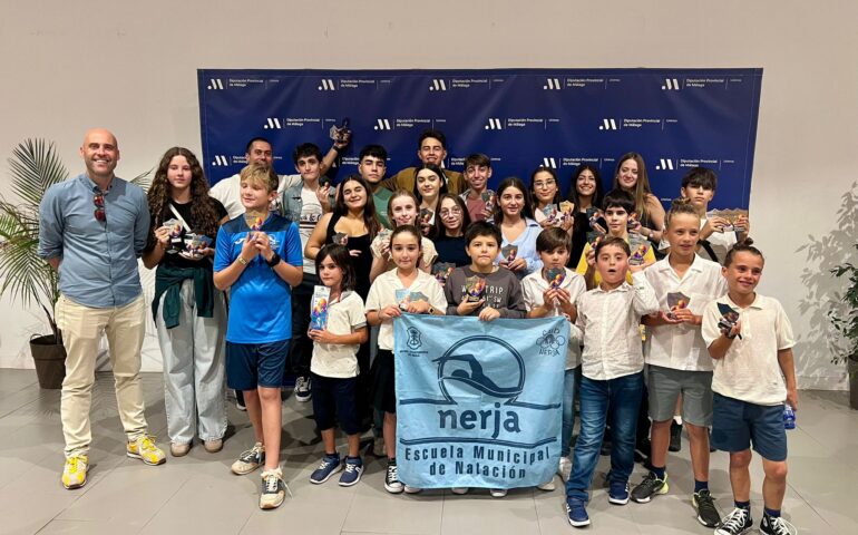 La Escuela Municipal de Natación de Nerja recibió reconocimiento en la Gala de los Circuitos Provinciales de Natación, celebrada en el Auditorio Edgar Neville de la Diputación de Málaga, que premia los resultados de los Circuitos de Invierno y Verano.