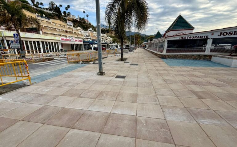 Actualmente, la empresa nerjeña Transportes Antelo está colocando la nueva solería, cuya instalación ya ha superado el setenta y cinco por ciento de la superficie proyectada. Paralelamente, se están llevando a cabo mejoras en la accesibilidad de los pasos de peatones, tanto en el acerado sur como en el norte. Una vez finalizadas estas actuaciones, se realizarán los trabajos de jardinería y colocación de mobiliario urbano.